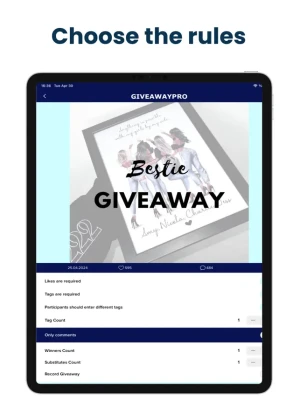 Choose the number of comments or tags you need and let GiveawayPro randomly select winners in minutes.