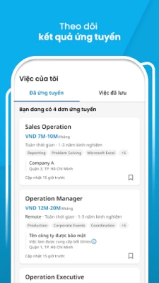 • Lưu lại việc làm yêu thích để ứng tuyển sau.