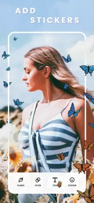 Sparkles to decorate photos with glitter & sparkles. Apply frames, light leak. overlays and glitter effects to photos. Text to write messages using different colors and fonts. Flip stickers and text horizontally. Delete unwanted stickers or text from image. Save to photo gallery. Share with your friends and family on any social media.
