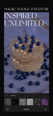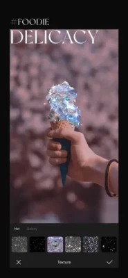 • Meticulously designed chunky glitter @TEXTURE presets for your photos.