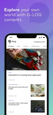 With gloxy's user interface, you can create your profile in minutes, discover the people around you and join the blog with different content.