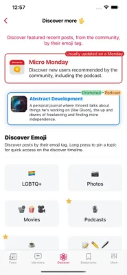 - Discover the discovery feed including all the “emoji” tagged discover sections.