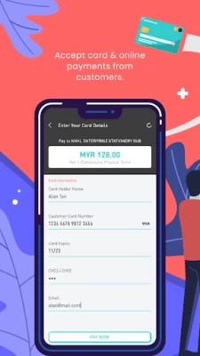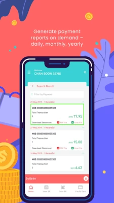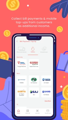 Receive digital payments via credit/debit cards and e-wallets, offer in-store top-ups and bill payments in one app!