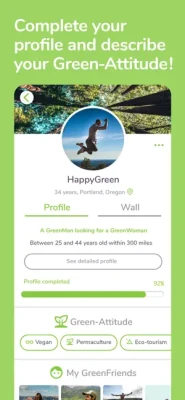 Your profile has several sections to introduce yourself in detail, upload photos and define your Green-Attitude.