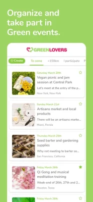 You can organize and participate in the events offered by other GreenLovers. Nothing better than a group activity to get together and meet new GreenFriends!