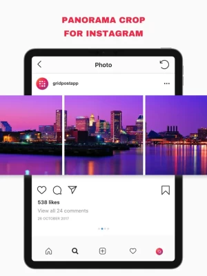 Photo Grid allows you to create swipeable post for instagram. Crop large panorama images into number of square pieces and upload to instagram with Instagram's new carousel album feature. Panorama crop is the best and fast swipeable app for instagram. Just select photo from gallery than choose number of square pieces and now all pieces are ready for upload.