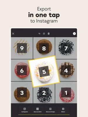 Sharing to Instagram is easy! Let Grids crop the image for you and submit the resulting pics to your Instagram in the order suggested by the app. You don't even have to save the tiles to your device as sharing to Instagram is embedded in the application!