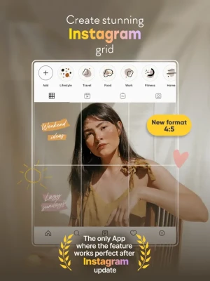 Grids introduces a totally new way of using your Instagram, wrapped in simple and beautiful design. Don't miss the chance to express yourself by embellishing your profile page and posting breathtaking large scale images in their full glory!