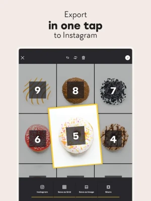 Sharing to Instagram is easy! Let Grids crop the image for you and submit the resulting pics to your Instagram in the order suggested by the app. You don't even have to save the tiles to your device as sharing to Instagram is embedded in the application!