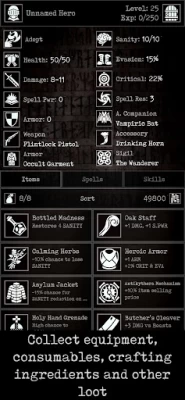 Grim Quest tries to blend tabletop RPG vibes, familiar dungeon crawling and roguelike mechanics, and a classic turn-based combat system into an accessible and entertaining package. Because of its attention to written storytelling, detailed worldbuilding and abundance of lore, Grim Quest can be similar to a solo Dungeons and Dragons campaign, or even a choose your own adventure book.