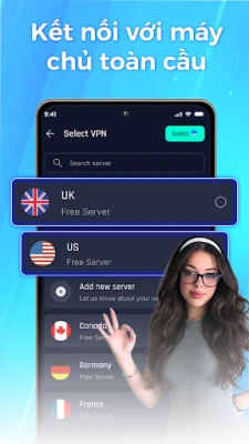 • Dịch vụ VPN — sử dụng Android VpnService để tạo đường hầm mã hóa và định tuyến lưu lượng truy cập của bạn một cách an toàn.