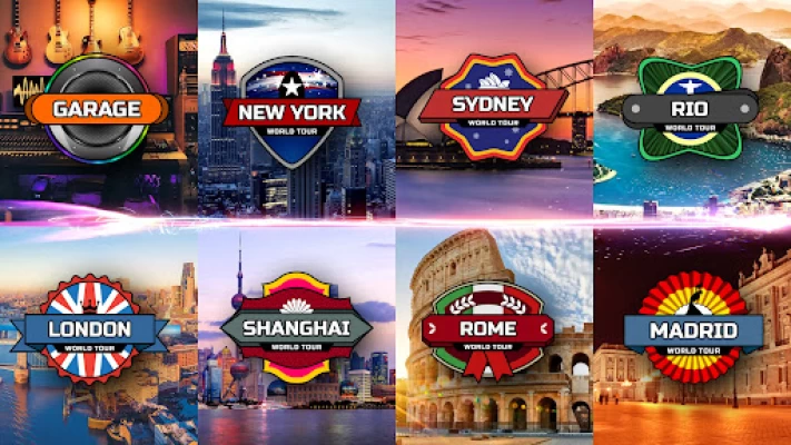 • Bắt đầu ban nhạc của bạn trong ga ra và phát triển bằng cách ký các hợp đồng biểu diễn và mở khóa các bài hát và guitar.
