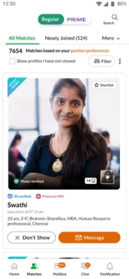 • Complete profile information - View full information like educational institute, company and horoscope/ kundli.