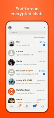 Your chats are end-to-end encrypted. No one outside of your chats can read them, not even HalloApp.