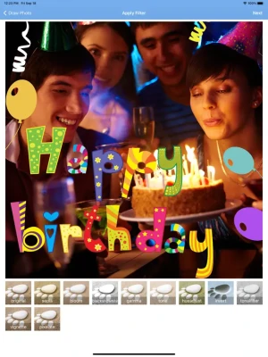 -Full photo editor, where you can edit and retouch each photo that you will use for the birthday greeting.