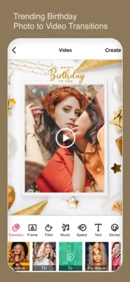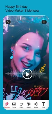 Happy Birthday Video EditorPicYou can easily Create Videos with your own photos, add birthday music track, add various birthday and cake frames, apply filter effects.Save video to library or share on social media.
