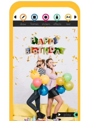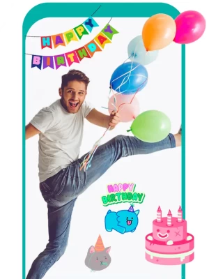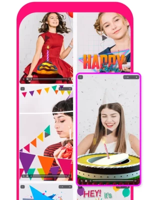 Download now and start to use our amazing birthday video maker to create animated birthday invitation or celebration cards. Create your personalized birthday videos and wish a happy birthday to your loved ones. Record a video; add gif animations, frames, stickers and songs in real time. Write your messages on your videos and share your sweet memories with your friends or family.