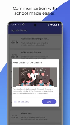 - News & Events to see the events happening in school/college and also add a reminder.