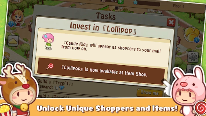 Design and build your own dream shopping mall in Happy Mall Story! Unlock unique and cute shoppers to your mall and become the ultimate mall tycoon!