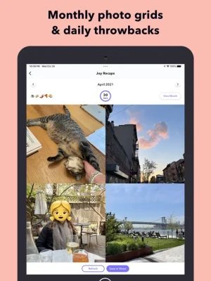After one week, you’ll be able to hop back to memories in your gratitude journal from exactly a week ago. This period grows to months and even years. After two weeks, you can view random moments using the Happiness Jar. Track how your life changes over the years!