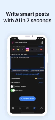 Hashtag Smart: AI Like Booster app utilizes AI(Artificial Intelligence) to find the trending hashtags for instagram, tiktok, youtube, X(twitter), linkedin, facebook, threads pinterest, and snapchat. Our app has many social media caption generators. Firstly, we have auto writer as a main tool. You can use it as a caption generator for all social media platforms. The most popular ones are instagram caption generator, tweet generator, linkedin post generator, facebook post caption generator, instagram threads generator, youtube video description generator.