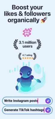 Our app also has AI social media assistant where you can use it as a social media seo tool. The most popular ones are instagram seo tool and tiktok seo tool. You can also use it as social media username generators. The most popular ones are instagram username generator, and tiktok username generator, and youtube username generator. It is a hashtag generator for expert ig, tiktok, and all other social media followers. Expert users need the best hashtags for likes and followers. Our app generates trending and viral hashtags with AI to increase likes and followers with trending hashtags!