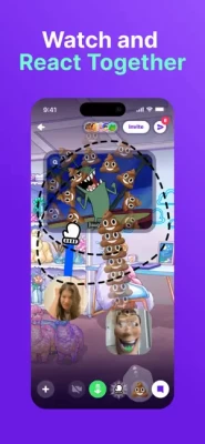 • Watch Stuff Together – you can screenshare any app from your phone and you can watch screenshares from others (with audio too). Feel like you’re sitting in a living room watching shows or online videos with your friends