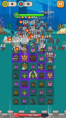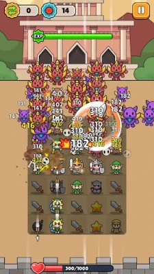 You need to upgrade your heroes through synthesis. Slide to place your heroes. Protect your castle. Eliminate all the monsters.