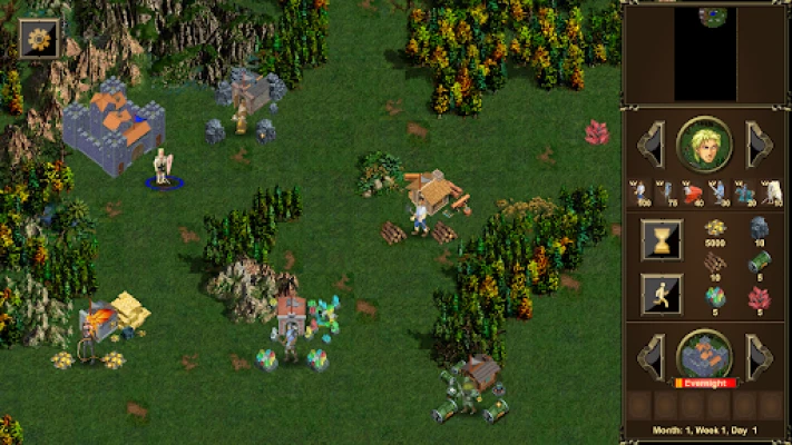 You control a hero who can recruit armies, move around the map, capture resources, and engage in combat.