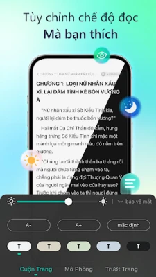 - Chế độ đọc ngày - đêm, bảo vệ mắt, cách lật trang theo sở thích, trải nghiệm đọc truyện tốt