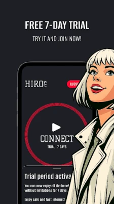 🛜 HiroVPN is a fast and secure VPN app designed for countries where access to the free internet is restricted. With constant new blocks and slowdowns, our free VPN proxy helps you bypass censorship, protect personal data, and enjoy stable streaming and online gaming. Every new user gets a free 7-day VPN trial — no registration, no personal data required.