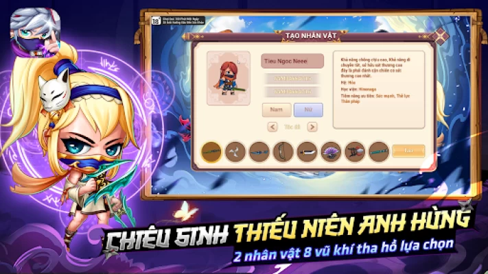 - Học Viện Ninja là tựa game mới thuộc thể loại game mobile nhập vai miễn phí, đồ họa 2D chibi. Khi bắt đầu, bạn sẽ lựa chọn giới tính nam hoặc nữ và chọn một trong 8 lớp vũ khí, cùng nhau tìm hiểu cũng như học tập để trở thành một Ninja xuất sắc. Đồng thời thông qua chuỗi nhiệm vụ chính tuyến sưu tập đủ 7 viên ngọc rồng đang bị thất lạc.