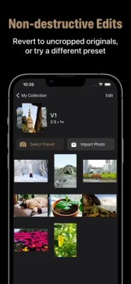 - Non-destructive editing: any cropping or editing is easily reversible