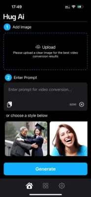 Transform your cherished memories into captivating videos with Hug AI, the revolutionary app that turns still images into dynamic, moving scenes. Using advanced artificial intelligence, Hug AI breathes life into your photos, creating realistic animations that will amaze and delight.