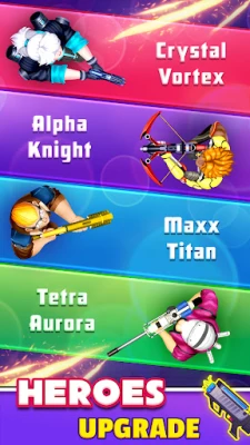 Each eliminated target drops valuable gems. Use them to unlock and upgrade new heroes and weapons.
