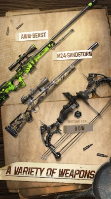 Marvel at the extensive array of weaponry at your disposal in Hunting Sniper. Experience unparalleled precision, exquisite design, and unmatched quality that enhance your hunting expedition. Elevate your weapon's performance with weapon tokens, allowing you to tailor your arsenal to perfection. And that's not all - complement your gear with cutting-edge bullets bullets to unlock impressive rewards and secure the trophy of a lifetime.