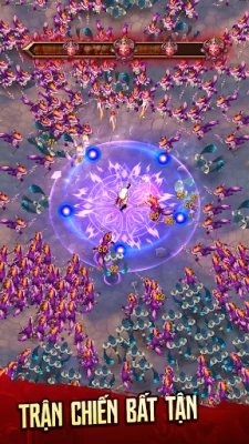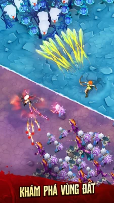 - Di chuyển nhân vật để tấn công từng đàn quái vật ập đến ngày càng đông.
