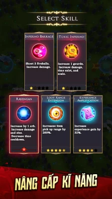 - Nâng cấp kĩ năng và phép thuật: Thu thập Đá kinh nghiệm để nâng cấp tới vô tận, tận mắt chứng kiến người hùng bạn yêu thích trở nên mạnh mẽ hơn từng ngày!
