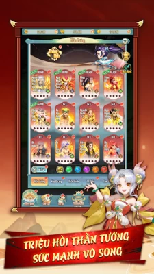 Hệ thống nhân vật đồ sộ, kịch bản cốt truyện vô cùng đặc sắc. Mỗi Thần Tướng có điểm mạnh-yếu riêng biệt và đa dạng sẽ khiến người chơi thỏa mãn đam mê sưu tầm, khao khát dấn thân vào những trận chiến quyết liệt và bùng nổ với nhiều trận hình lý tưởng.