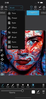 There are too many effects to be listed here, more than 500! The effects are from simple image adjustments to complicated graphic transformations. Images can also be repainted with many different brushes, and you can import and use Photoshop brushes! Just check the tag #icolorama on Instagram and find more than 300 000 images that have been edited using this app! Start creating your own art today with iColorama!
