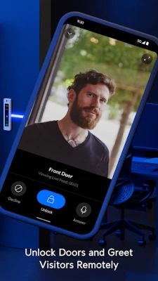 Remote Call & Remote View Accept visitor calls from Access readers and unlock connected doors remotely.