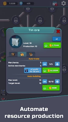 Just like in other empire building simulator games, you need to develop and upgrade your production by mining and crafting resources and earning gold. As in other tap, clicker games, you can upgrade and automate factories and earn gold even if you are offline!