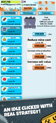 ● Use autobuyers to upgrade mines and factories even when offline!