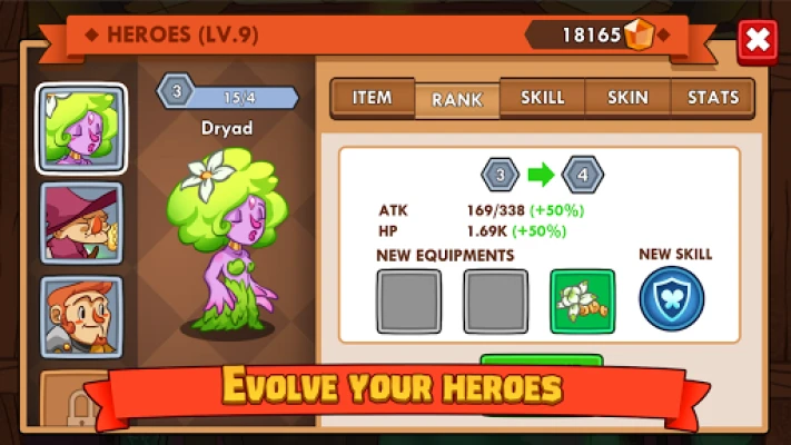 Create a balanced team of knights, healers, gunners and many more to battle the evil in this idle RPG.