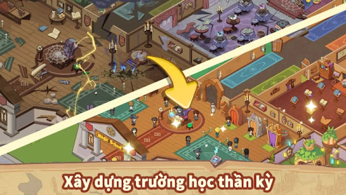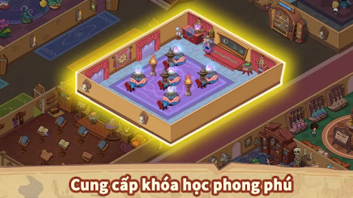 Ngay cả khi bạn không đăng nhập vào trò chơi, trường học của bạn sẽ tự động chạy, tạo ra doanh thu ngoại tuyến và xây dựng trường học phép thuật tốt nhất trên thế giới.