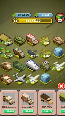 Discover new recruits to join your ranks and improve your income . How will you organize your base ? HUMVEE , STRYKER , Medical Evacuation Vehicle , Bomber, Grenade, Rocket Launcher, or Tank, , they are all available to help you to rise the idle income.