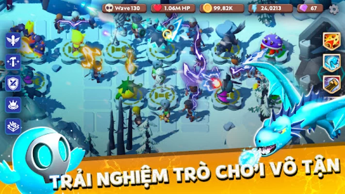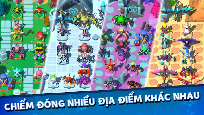 - Lập chiến lược bằng cách đặt tối đa 10 tháp quái vật cùng một lúc. Xác định sự kết hợp hiệu quả nhất giữa các kỹ năng cơ bản của họ và các tăng cường thụ động sẽ giúp bạn giải trí và suy đoán trong nhiều tuần!