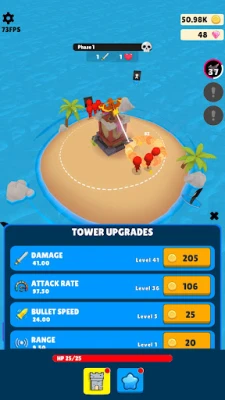 Welcome to Idle Shores, the ultimate idle tower defense game set on a tiny island in the middle of the ocean! Take command of a lone stone tower armed with a mighty crossbow, upgrading your defenses and unlocking new abilities as waves of enemies storm the shore. With simple tap controls and deep strategic depth, Idle Shores combines casual gameplay with engaging progression—perfect for both quick sessions and long playthroughs.