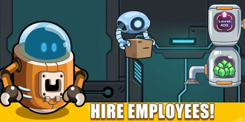 ❤ Idle Space Miner-Idle Cash Mine Simulator cho phép bạn thuê người quản lý để tăng động lực cho người khai thác robot dễ thương của bạn và để họ tự động thu thập tài nguyên.