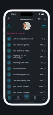 • Manage your following and unfollowing actions, and see who you are not following back or who is not following you back.